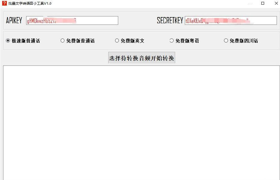 软件上方的APIKEY和SECRETKEY需要去百度AI网页的语音识别板块上申请,完全免费的申请。
