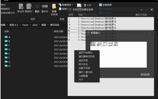 更名之后,将所有文件 提取到 xx合集文件夹下,并且根据配置类型或扩展名创建目录移动到目录里