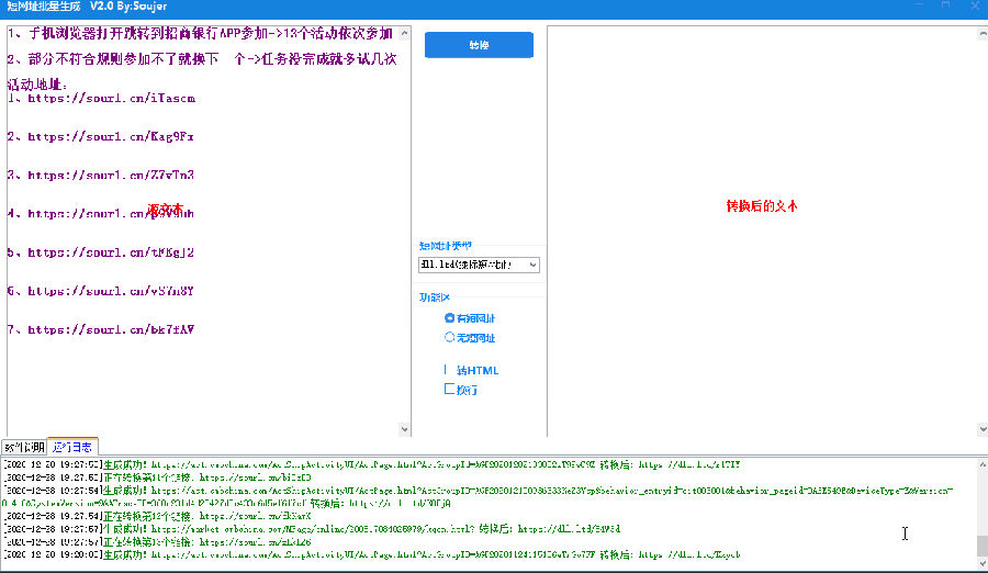 有时候我们在网页浏览到有用的内容想要分享给好友,但是比较麻烦,可以使用这款晓杰短网址批量生成软件来将长链接转换为短链接,支持批量生成,从而可以让用户更好地和朋友分享活动或者淘宝商品等等,很适合用来做推广,非常的方便!