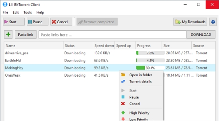 LIII BitTorrent是个源码完全开放的Windows 平台BT 种子下载工具,软件体积相对来说算是比较小的了,只有十几MB,占用资源低,您可以利用它下载各种BT种子资源,不限速度,支持多种链接上面的下载,还可以从URL或磁力链接打开种子,非常方便。