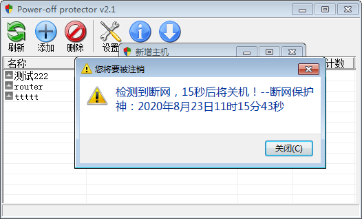 1、每15秒检测一次,当列表内的主机PING不通时将执行关机