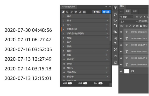 PS内容填充助手是灰色执照开发的又一款基于PS的插件,它可以快速的填充各种类型的文字数据