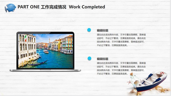 另外使用了小船插图、锚插图、鱼类插图、海滨城市插图等装饰。
