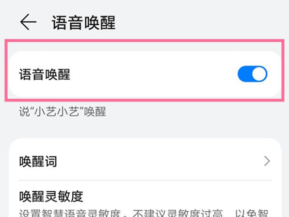 4、将语音唤醒的开关开启。